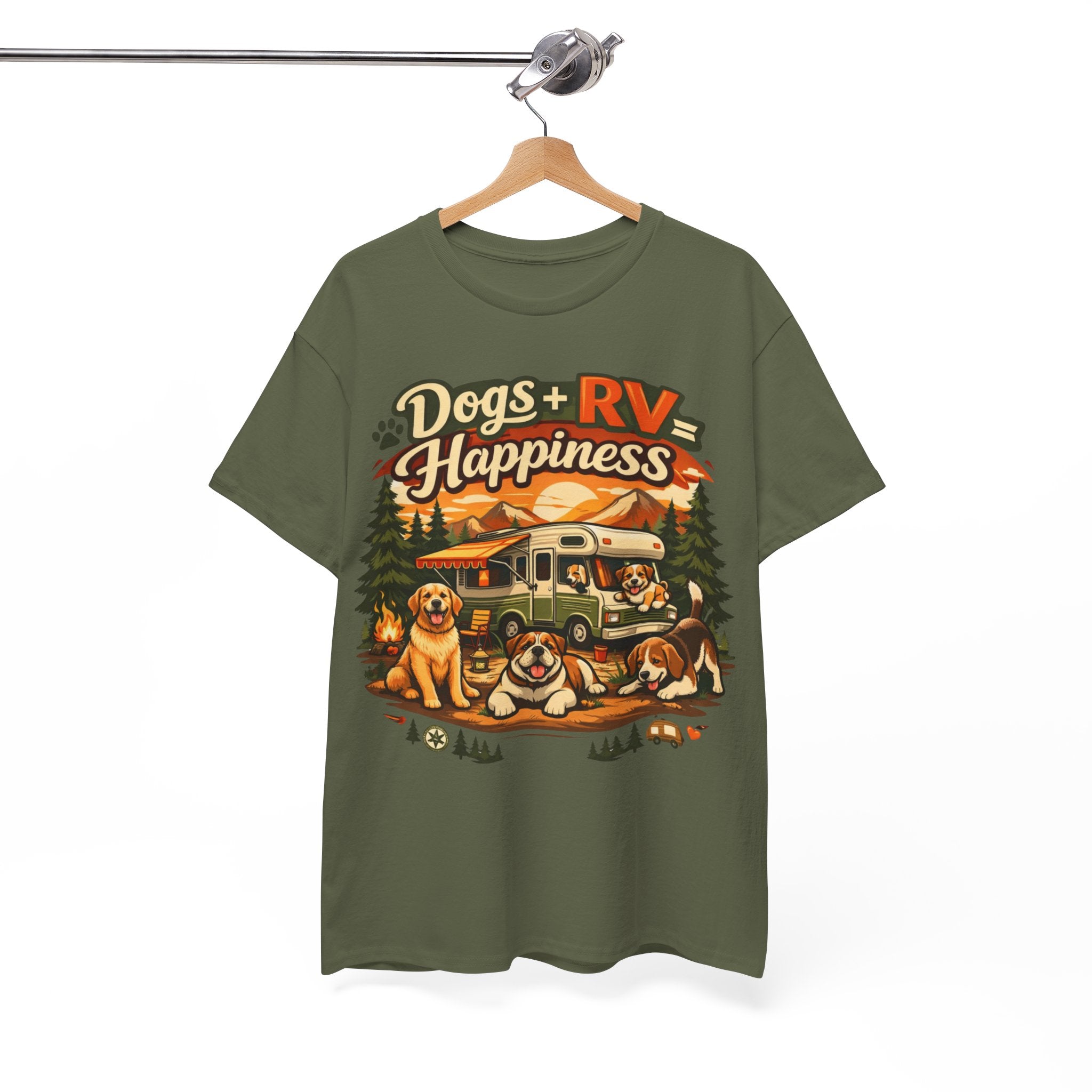 Dogs + RV Happiness Graphic Tee — Camping T‑Shirt for Dog Lovers